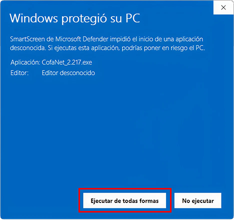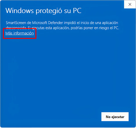 Para saltar este bloqueo e instalar correctamente nuestra aplicación, haga click en “Mas información”.